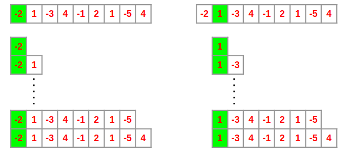 그 값을 다시 기존의 최대값과 비교해서 마지막에는 결국 전체 부분 배열의 최대값이 도출되도록 하는 것이다.