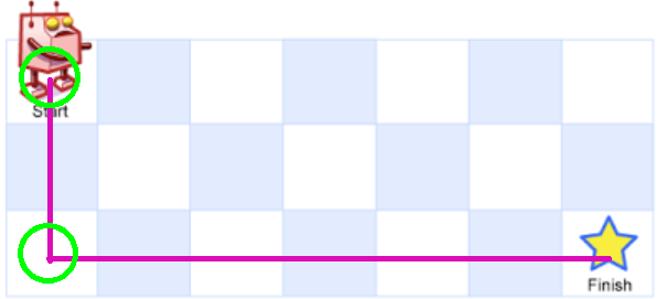 이동하는 Path 의 경우의 수를 생각해봤을 때 아래처럼 지나가는 셀의 수는 행+수-겹치는셀2개 = m+n-2의 셀을 지납니다.